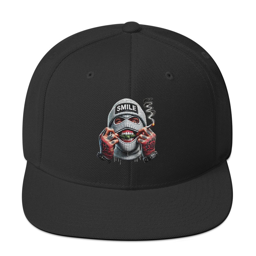 This hat is structured with a classic fit, flat brim, and full buckram. The adjustable snap closure makes it a comfortable, one-size-fits-most hat.